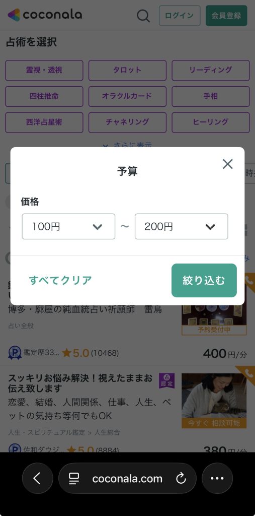 ココナラ電話占いは、占い師と電話で直接話しながら相談できるサービスです。